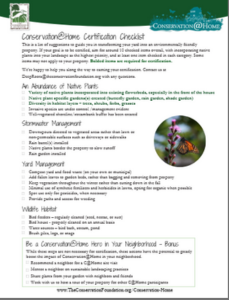 - Conservation@Home sign upon certification to display in your yard and let others know that you’re helping the environment, right at home.